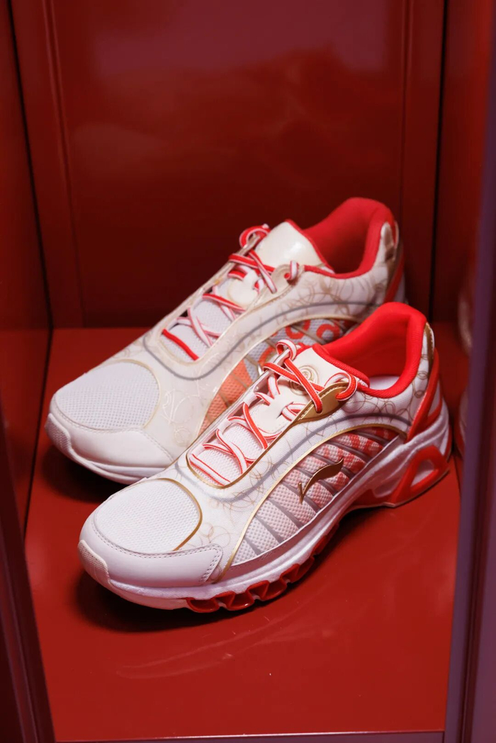 惊喜亮相秀场的升级版“点火鞋”,让荣耀历史时刻重现眼前:2008年北京奥运会开幕式上,李宁脚踏一双特别的红色祥云跑鞋,在全世界的瞩目下,震撼“飞天”点燃圣火。而那双从未公开市售的全掌弓祥云跑鞋,将成为全新“弓ACE”鞋款的原型,标志性“祥云”图案和谐点缀,“全掌弓”缓震科技带来舒适、轻盈的穿着保护效果。